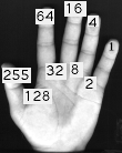 is represented by the middle finger. Simililarly, "adding" either the pinky,